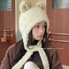 2025 new cute bear ears knitted wool hat women's plush hat autumn and winter warm ear protection big head circumference