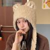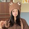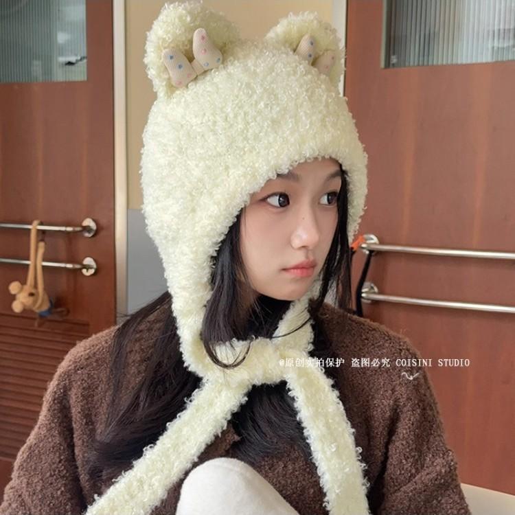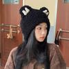 Korean cute bow plush circle bear hat women's thickened warm knitted headgear ear cap