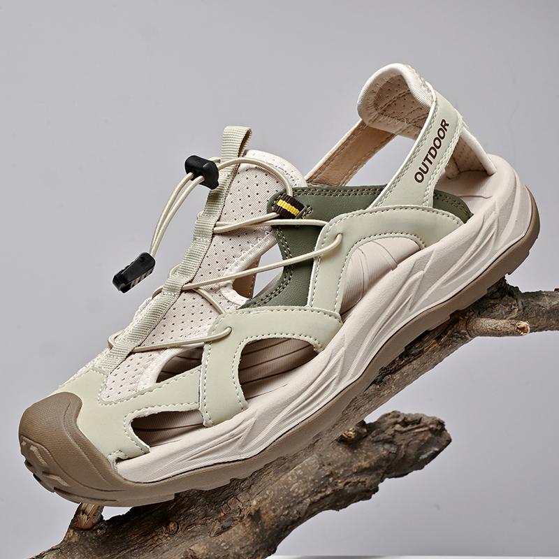 Fashion Durable Rubber Sole Outdoor Walking Sandals Quick Dry Mens Sandals Adjustable Solid Color Summer Shoes Casual Comfy Beach Flats