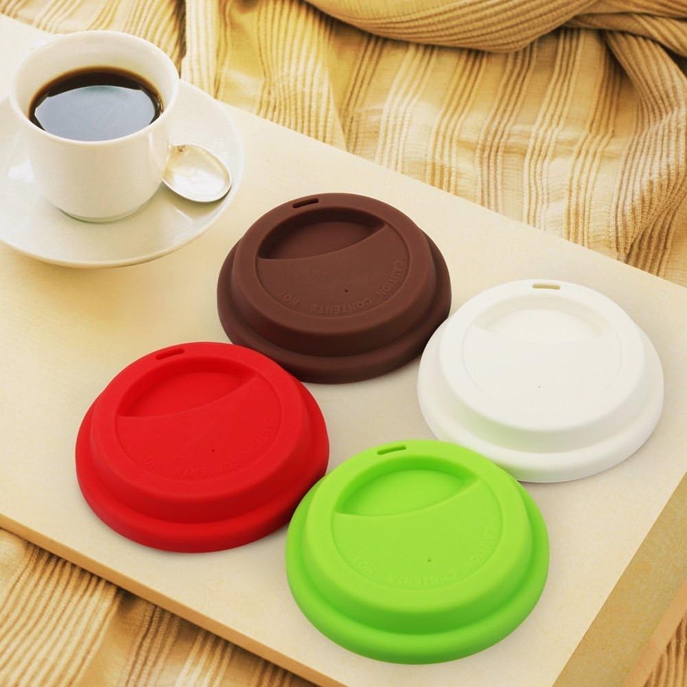 4 Pack Silicone Coffee Cup Lid Drinking Lid,Reusable and Durable Soft Silicone Drinking Lid-Red,Green,White,Brown
