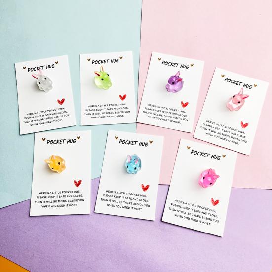 Feito de resina e papel de alta qualidade, este encantador cartão de abraço de bolso de coelhinho da Páscoa apresenta um mini coelhinho transparente em cores vibrantes como amarelo, roxo, verde, azul, rosa e branco.. A textura cristalina de cada coelhinho oferece uma deliciosa sensação de "abraço na palma da mão", tornando-o uma lembrança emocional única.. Impresso com palavras sinceras—"Aqui está um pequeno abraço de bolso". Por favor, guarde-o seguro e perto, então ele estará lá ao seu lado quando você mais precisar."—este cartão transmite calor, cuidado e companheirismo.