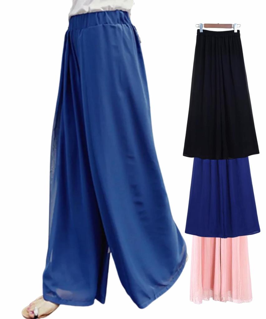 Sesong Calças Gaucho Largas Forradas Compridas Tamanhos Grandes Relaxadas Outono Pernas Largas, Calças, Chiffon, Parte de Baixo Feminina, Calças, Calças, Disponível, Caimento, Emagrecimento,