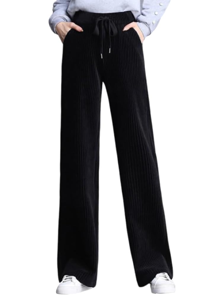 MDMYXJP Veludo Cotelê Perfeito para o Outono e MD371 Calças Femininas, de Perna Larga, Forradas com Lã, Quentes, Longas, de Cintura Alta, Inverno, (JP, Alfabeto, L, Preto)