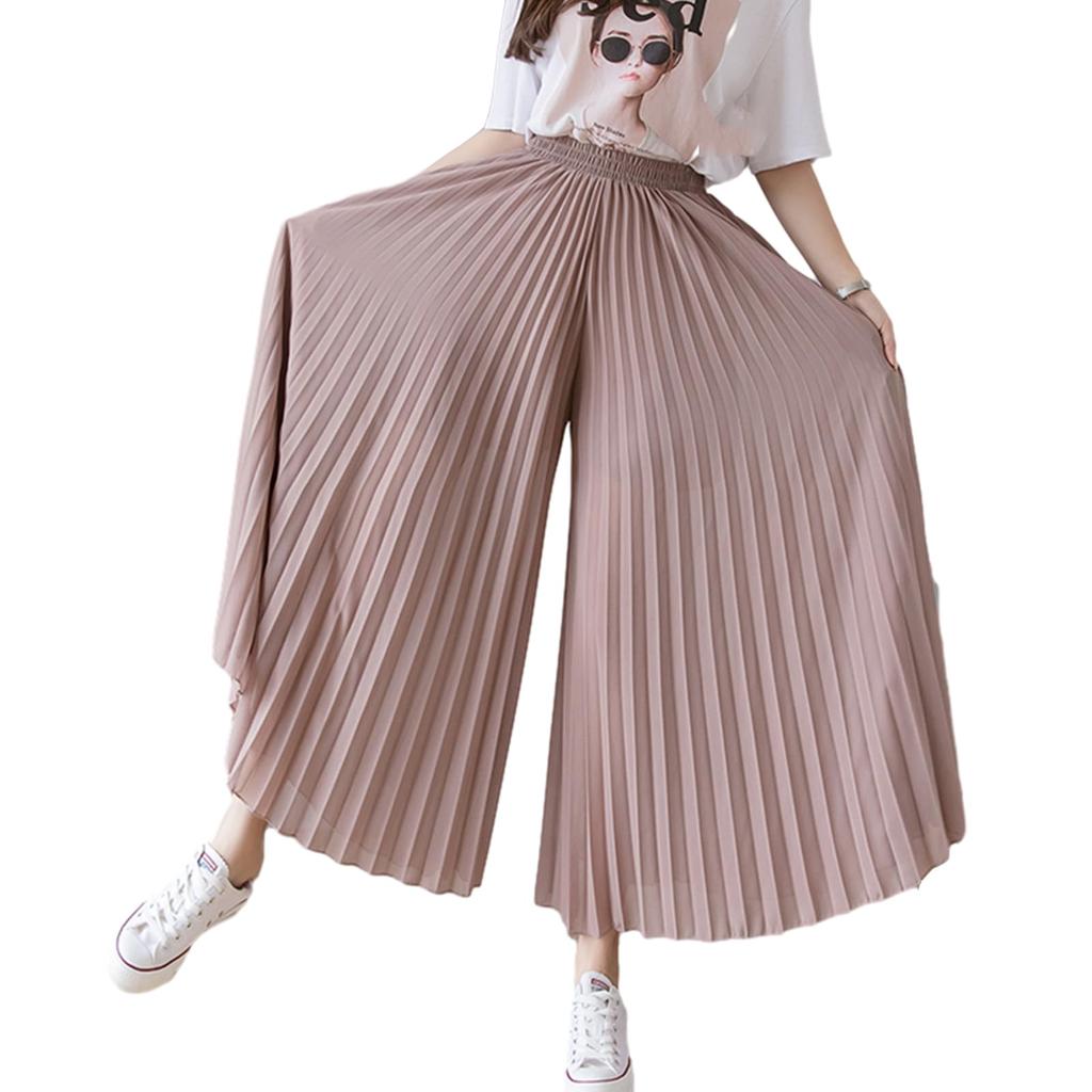 [Calças Largas Compridas Populares] Apresentamos nossas populares calças largas compridas, perfeitas para a próxima estação. À primeira vista, parecem apenas uma saia. A forma como eles flutuam com seus movimentos certamente elevará seu look.. O design simples também os torna fáceis de coordenar com uma variedade de peças, tornando-os incrivelmente versáteis.. O cós elástico não aperta, e podem ser usados de cintura alta, fazendo as suas pernas parecerem mais longas e dando-lhe um efeito adelgaçante.. Estes são ótimos itens que não apenas cobrem suas pernas, mas também seus quadris e outras áreas do seu corpo com as quais você pode estar preocupada.