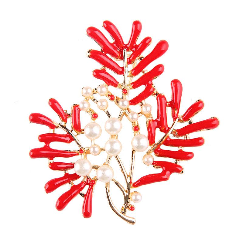 Coral Flower Pearl Brooch Drop Oil Design Women's Clothing Decor Cute Style Long-lasting Color Exquisite BFF Gift Accessory