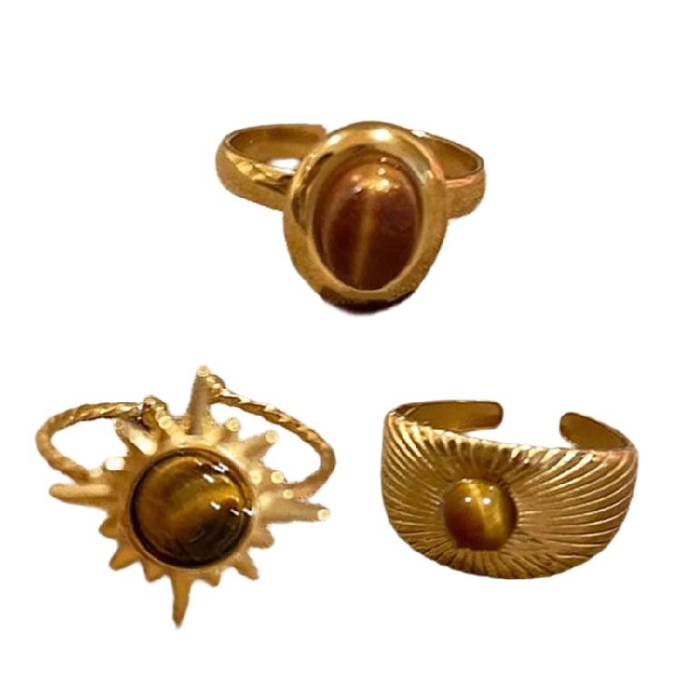 Geometric Tigers Eye Stone Ring Adjustable Size Irregular Gold Color Finger Ring Unique Gemstones Statement Jewelry
