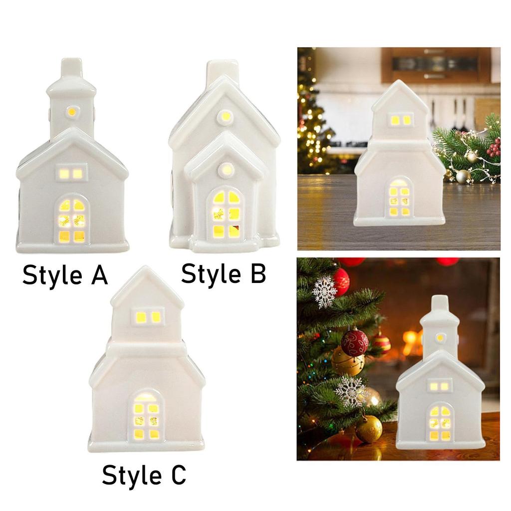 Christmas Miniature House Statue, Tabletop Ornament with Light Gift Christmas
