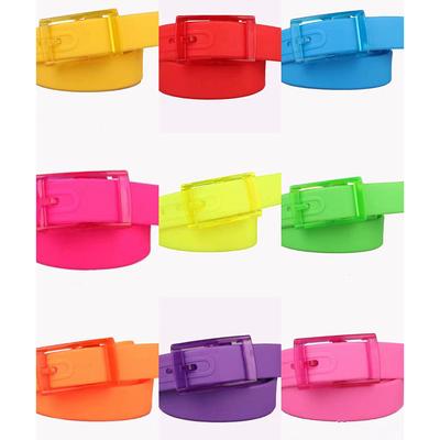 Cinto de Cintura Ajustável de Silicone Cor Doce Gelatina para Mulheres Homens Fivela de Plástico Borracha