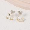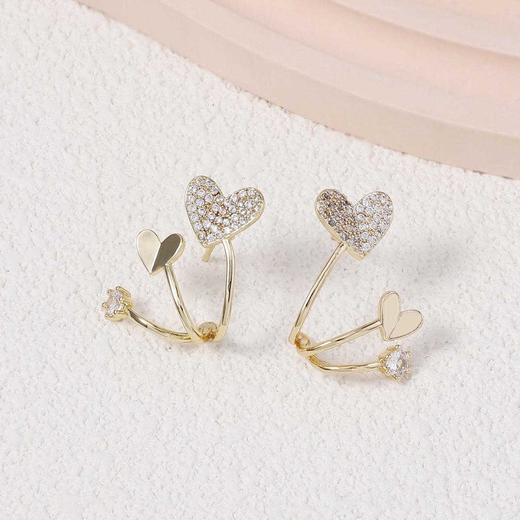 Korean version of the new niche design zirconium diamond double love three-line fishtail exquisite earrings, double peach heart simple model