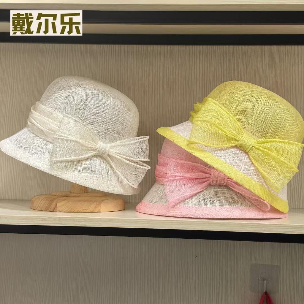 Dell Le Bucket Hat Female Hepburn Style Bow Linen Yarn Summer Breathable Light Sunscreen Hat Versatile Luxury Basin Hat