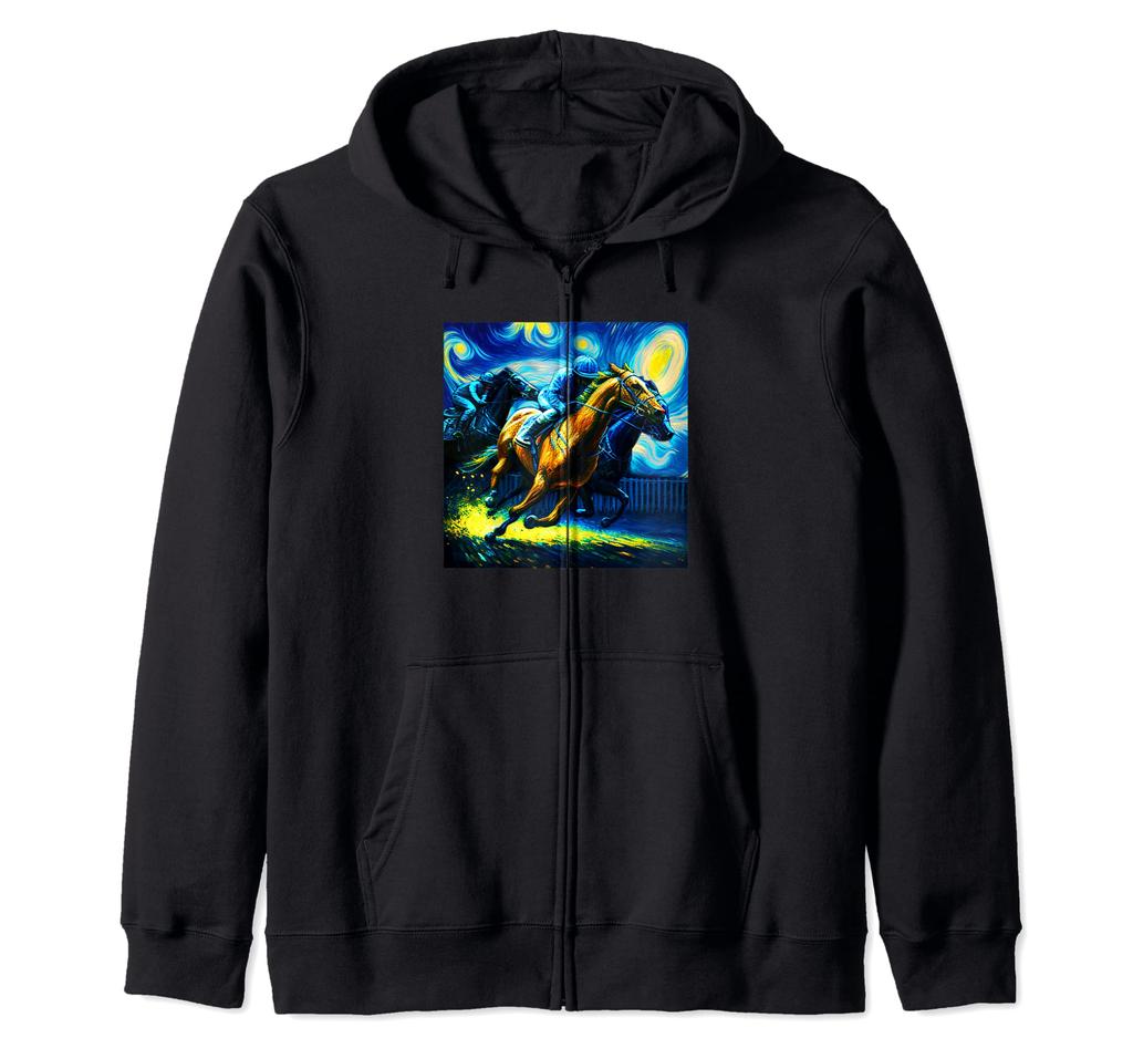 Horse Racing T-Shirt, Funny Horse Racing T-Shirt, Horse Riding, Horse Racing, Funny T-Shirt, Men's Goods, Funny, Adult, Men, Van Gogh, Zip-Up Hoodie