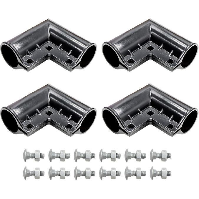 Black 4 Packs Aluminum Chain Link Fence Gate Corners, Gate Elbow with 90 Degree Angle Design for 1-3/8" x 1-3/8" Outdoor Diameter Pipe, Pressed Gate