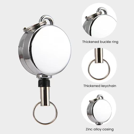 Esta fivela retrátil apresenta uma construção durável em liga metálica combinada com uma corda telescópica de nylon resistente ao desgaste, garantindo uso duradouro e proteção confiável contra quedas.. Projetado com um mecanismo de tração forte, permite um alcance confortável do braço enquanto segura seus itens com segurança..