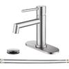 Brushed Gold Bathroom Faucet with Plastic Pop Up Drain, 6.25'' Metal Escutcheon and Supply Lines, Single Handle Stainless Basin Mixer Tap, Modern