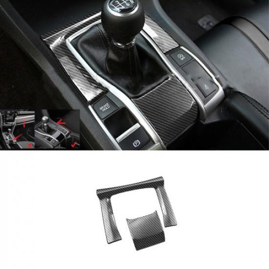 Console Gear Shift Frame Cover 2* For Honda Civic MT 2016-2021 ABS Carbon Fiber