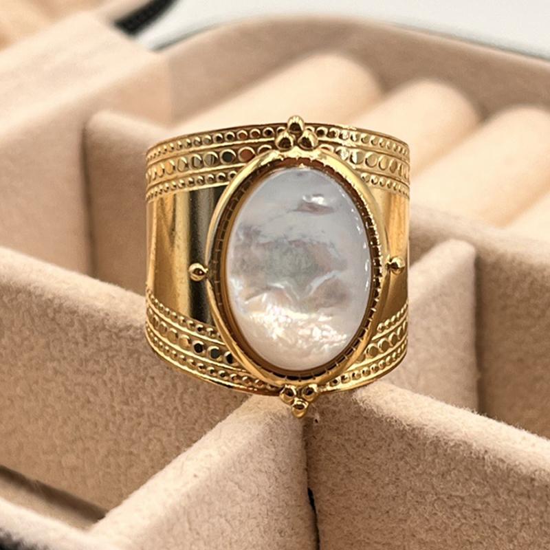 Luxury Turquoise Natural Stone Open Rings for Women 14K Gold Plated Stainless Steel Rings Wide Ring Female Jewelry Party Gifts