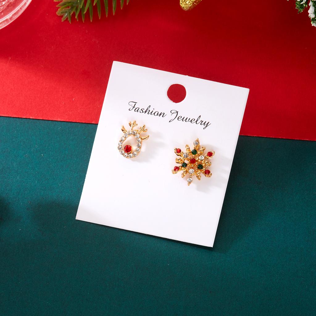 Exquisite Snowflake Elk Asymmetrical Earrings for Women Girl New Design Red Christmas Tree Star Earrings New Year Jewelry Gifts