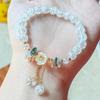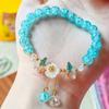 Cute Green Crystal Bead Bracelet for Women Trendy Lily Valley Flower Charm Elastic Adjustable Bracelet Wedding Birthday Jewelry