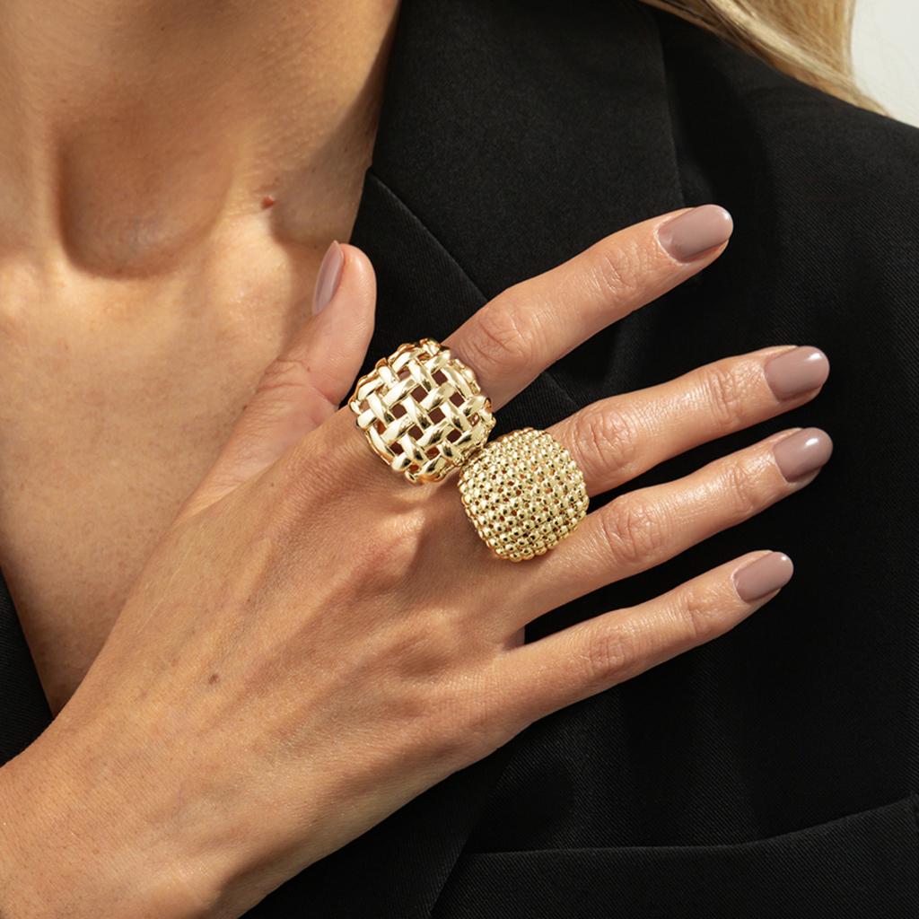 KunJoe 2Pcs/Set Trendy Geometric Adjustable Open Rings for Women Vintage Irregular Square Chunky Knuckle Ring Wedding Jewelry