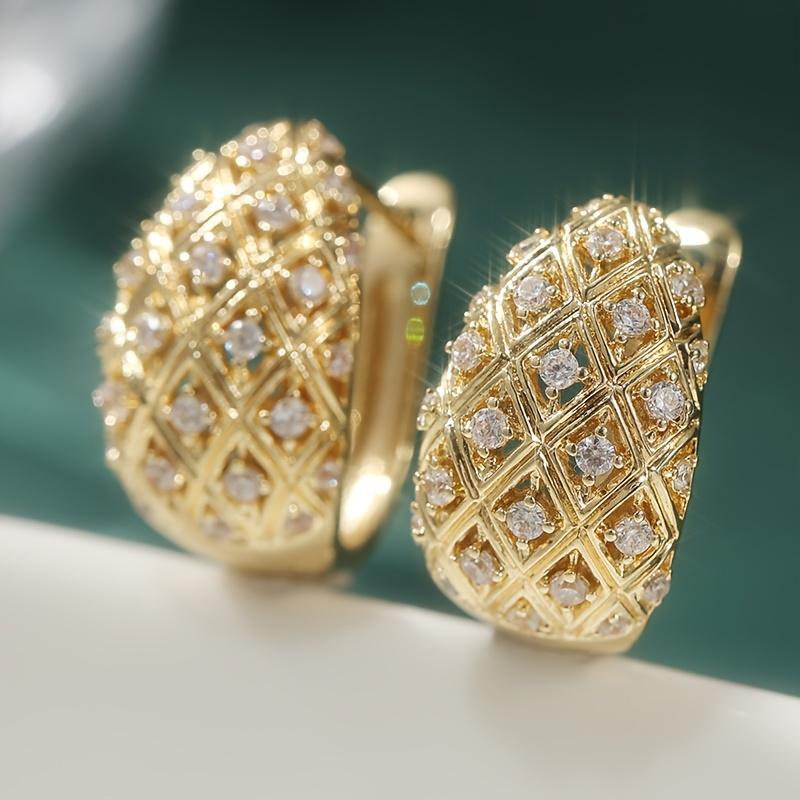 Elegant Gold Color Hoop Earrings with Zirconia - French Style for Weddings Formal Events Wedding Jewelry