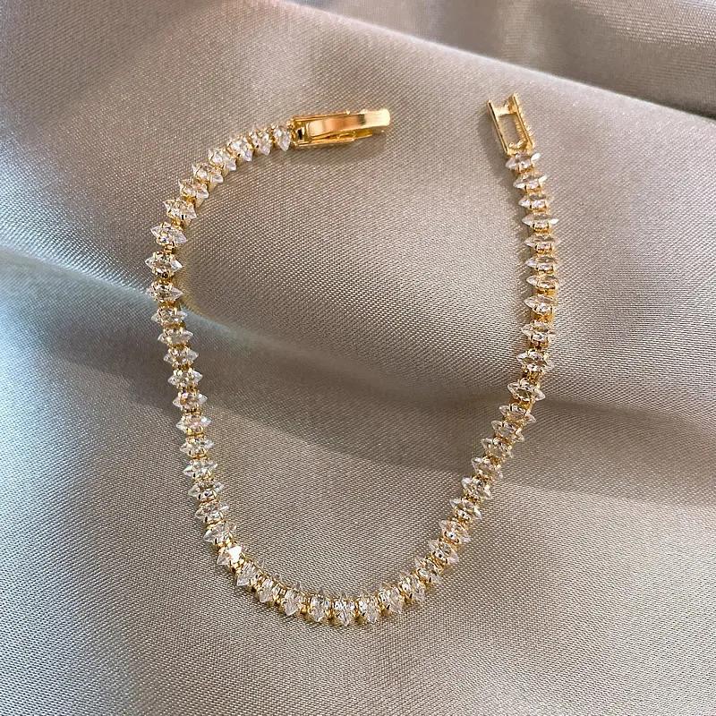 Luxury Roman Crystal Geometric Chain Bracelets for Women Trendy Goth Full Rhinestone Marquise Charm Bracelet Wed Jewelry Gift