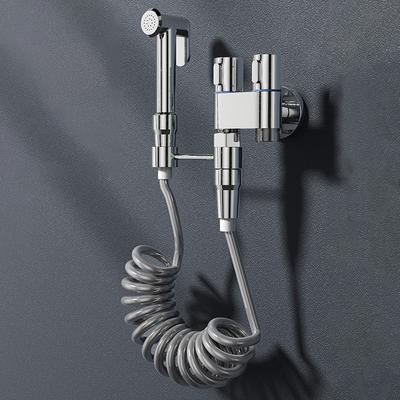 Torneira para Máquina de Lavar Louça Latão Cinza/Cromo Conjunto de Torneira Dupla Uso Banheiro Bidê Montada na Parede Bico de Limpeza de Banheiro de Alta Pressão