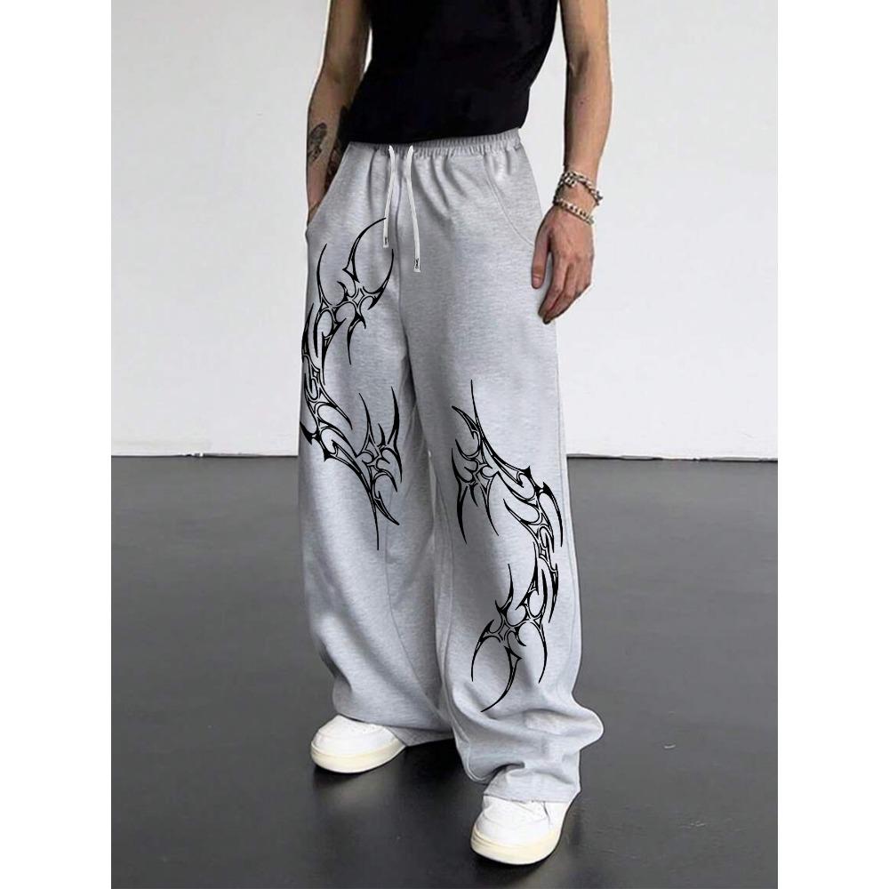 Calças Esportivas Casuais Masculinas Escuras de Perna Reta e Calças de Perna Larga com Nova Estampa Dominadora