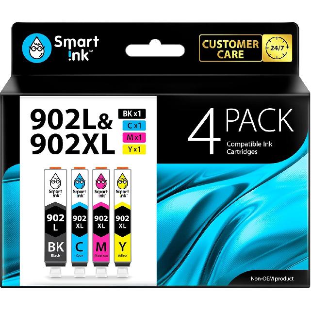 Smart Ink Compatible Ink Cartridge Replacement for HP 902 XL 902XL (4 Pack) Advanced Chip Technology to use with Officejet 6951 6954 6956 6958 6950