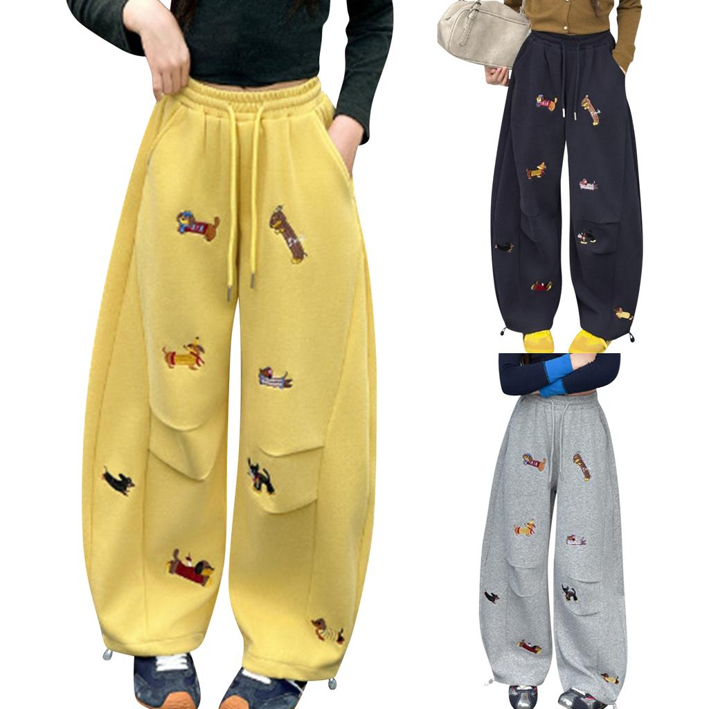 Children's Embroidered Puppy Loose,Fit Bucket,Shaped Sweatpants Casual Elastic Waist Drawstring Unisex Wide,Leg Pants Long Trousers Sweatpants
