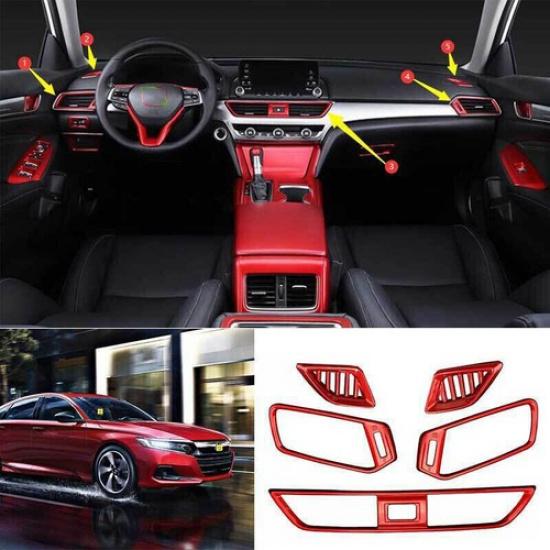 Glossy Red For Honda Accord 18- Dash Center Console Air Outlet Vent Cover 5X