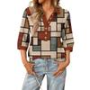 Apresenta um elegante decote em V com um detalhe de gola virada, oferecendo um visual versátil e moderno que emoldura lindamente o decote. Emenda Única : Confeccionada com um design de retalhos contemporâneo, esta blusa adiciona interesse visual e um toque moderno ao seu guarda-roupa casual de verão.. Mangas Três-Quartos Confortáveis: Possui mangas três quartos relaxadas (Mangas 7/10) para um caimento leve e confortável, perfeito para o clima mais quente e para facilitar os movimentos. Tecido respirável de 200g com aparência de algodão: Feito de um material macio, semelhante ao algodão, de 200g, que garante excelente respirabilidade, conforto o dia todo e uma sensação leve para o trabalho, casa ou um encontro.. Top Versátil de 1 Peça: Uma peça 1PC completa, pronta para usar (topo) que transita sem esforço do trabalho para relaxar em casa ou para um passeio casual, tornando-o um item essencial para o seu dia a dia (roupas). : Lavar à mão ou à máquina em água fria