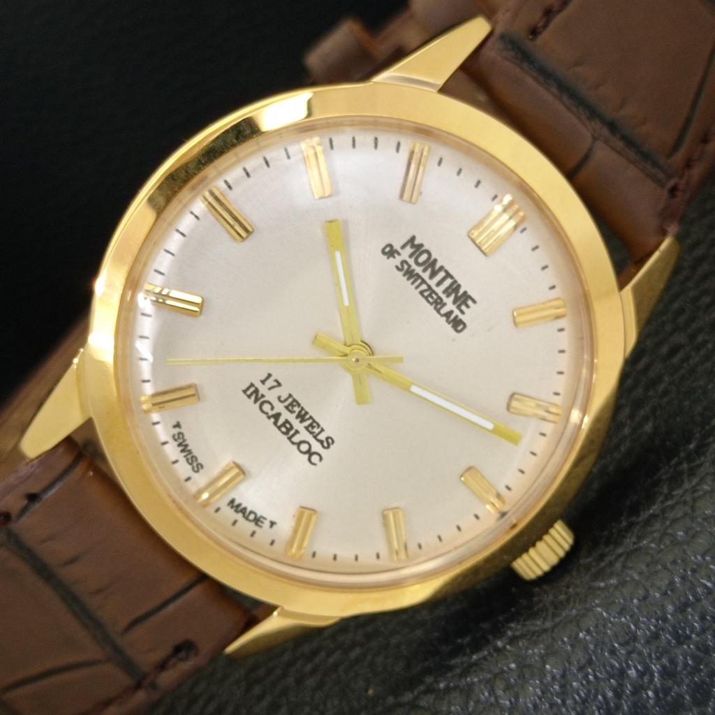 RELÓGIO MASCULINO MONTINE VINTAGE SUÍÇO DE CORDA MANUAL MOSTRADOR PRATEADO REFORMADO a441569-5