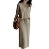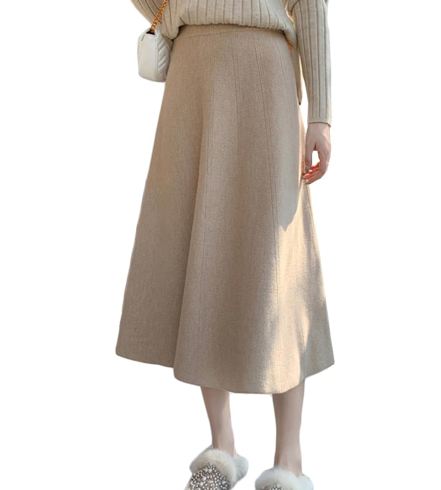 JudyRose Knit Flared Midi Elastic Warm for Fall and Winter One Women's Skirt, Length, A-Line, Waist, (JP, Alphabet, Size, Beige)