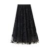 Blostirno Pleated Tulle Long Maxi Length with Elastic Waist and Lined Detail Women's Skirt, A-Line (JP0112-DGR)