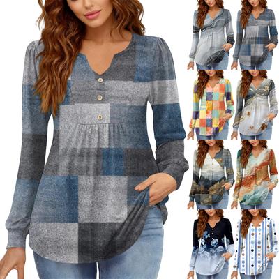 Camiseta Feminina Relaxada, Gola V, Cor Vintage, Bloqueada com Estampa Floral, Manga Longa, Pulôver