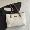 Bolsa de mão macia grande capacidade outono inverno bolsa de ombro feminina lã de cordeiro bolsa tote com zíper casual compras viagem tote