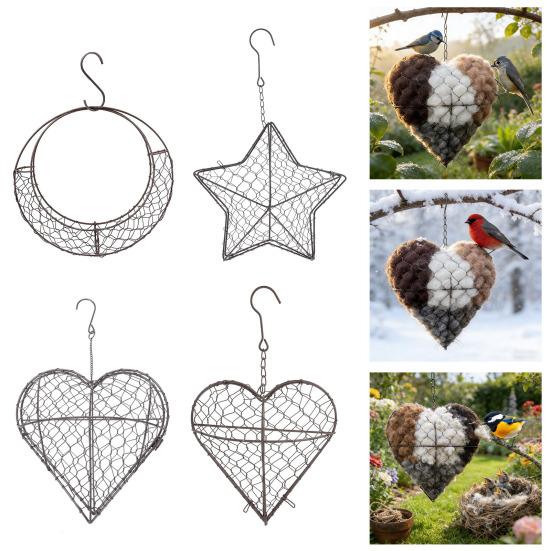 Confort Ideal para Aves Nidificantes: Esta casa de nidificação para pássaros apresenta uma estrutura de metal em forma de coração projetada para ser preenchida com materiais macios. (não incluso), proporcionando às aves um ambiente quente e acolhedor. O espaço confortável incentiva os pássaros a recolherem fibras para nidificação, promovendo um habitat natural e saudável para criarem os seus filhotes.