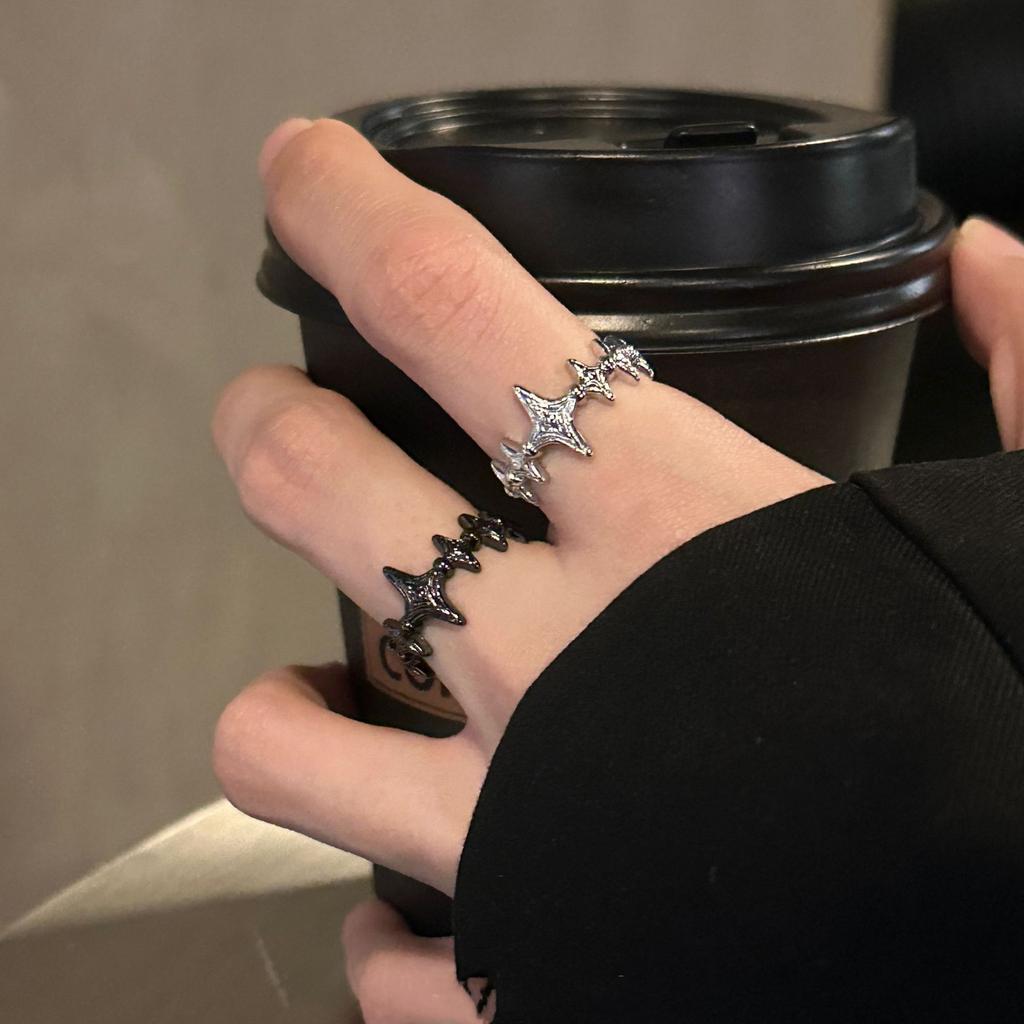 Retro Twinkle Stars Adjustable Open Ring For Women Silver-plated Copper Gothic Punk Edgy Trendy Accessories Gift for Her
