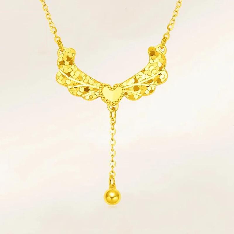 Inspiration design Glossy diamond studded crushed ice wings necklace heart-shaped tassel small golden ball collar chain