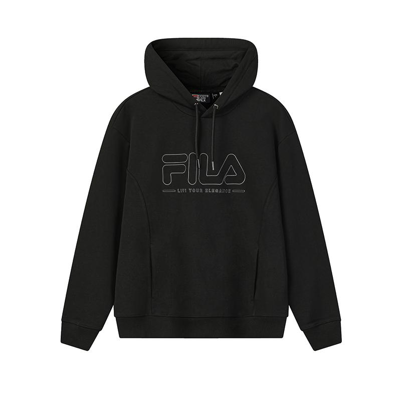 FILA Original Fashion Classic Simple Retro Sports Casual Embroidered Logo Versatile Comfortable Loose Knit Hoodie Unisex hoodies Black F61U619201FBK