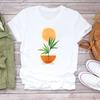 (European Size)90s Women Print Lady Female Plant Sweet Watercolor Style Tee Top Fashion T Shirt Clothing Casual Short Sleeve Graphic T-shirt