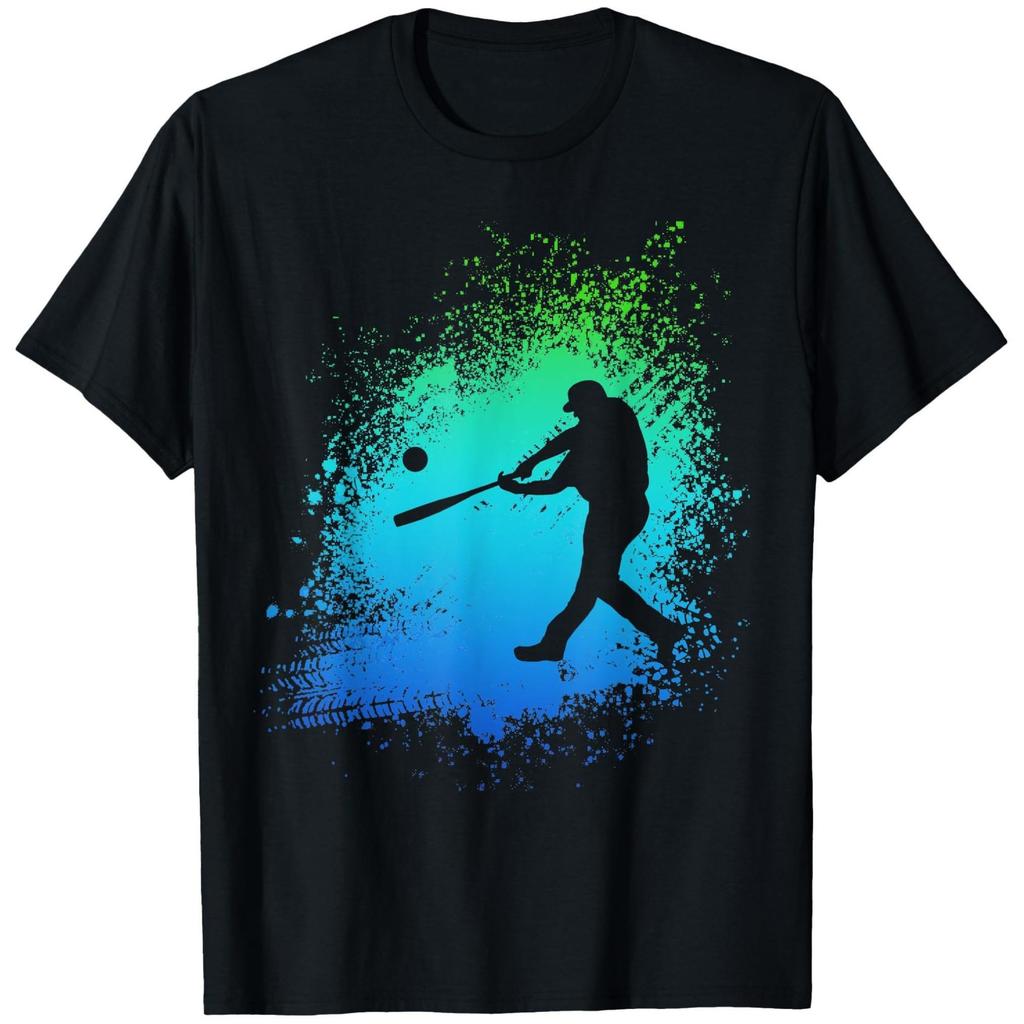 Baseball Batter Silhouette Splatter Graphic Print Cotton Round Neck T-Shirt Casual Daily Tee for Men