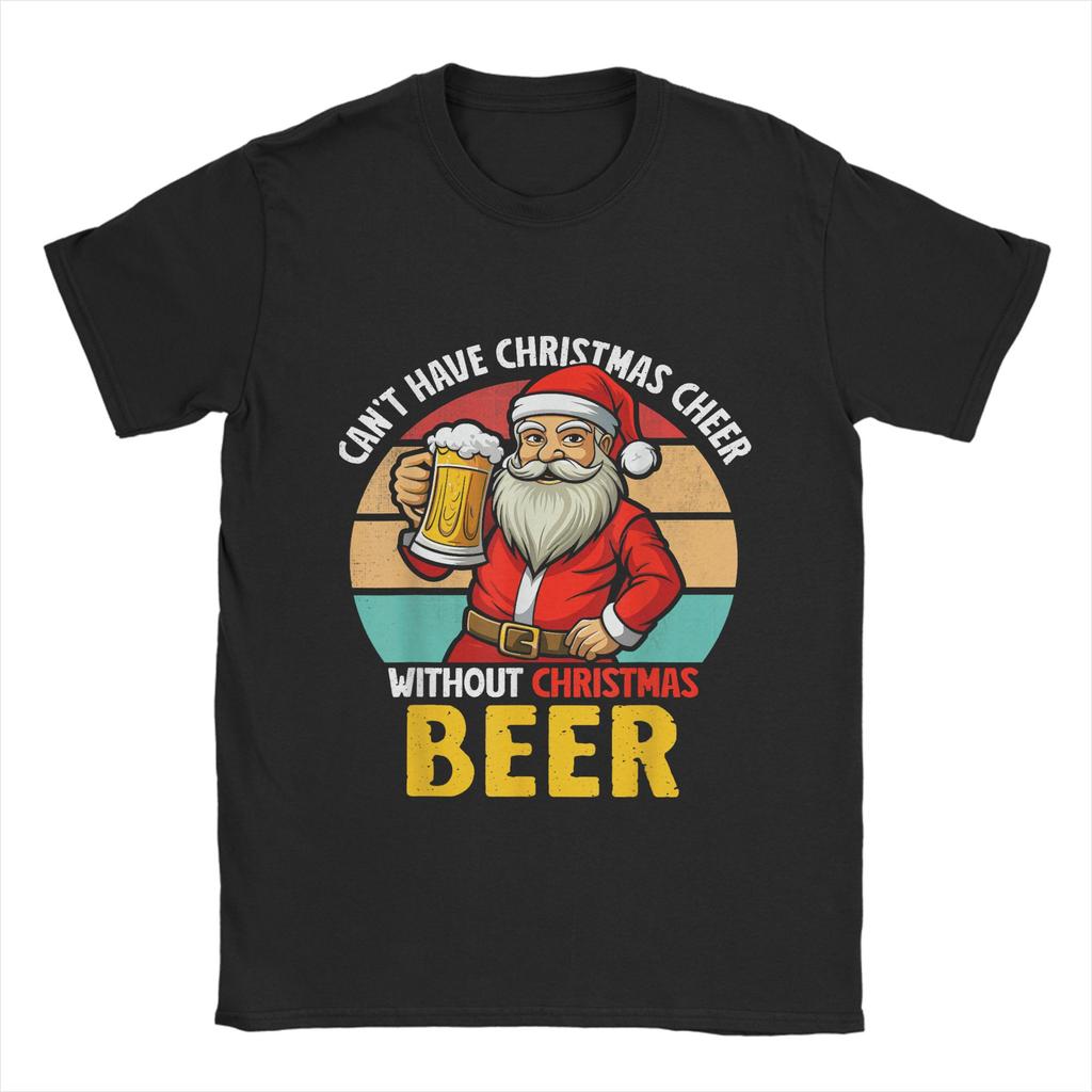 Men Christmas and beer T Shirt 100% Cotton Tops Creative Short Sleeve Crew Neck Tee Shirt Graphic Printed T-Shirts