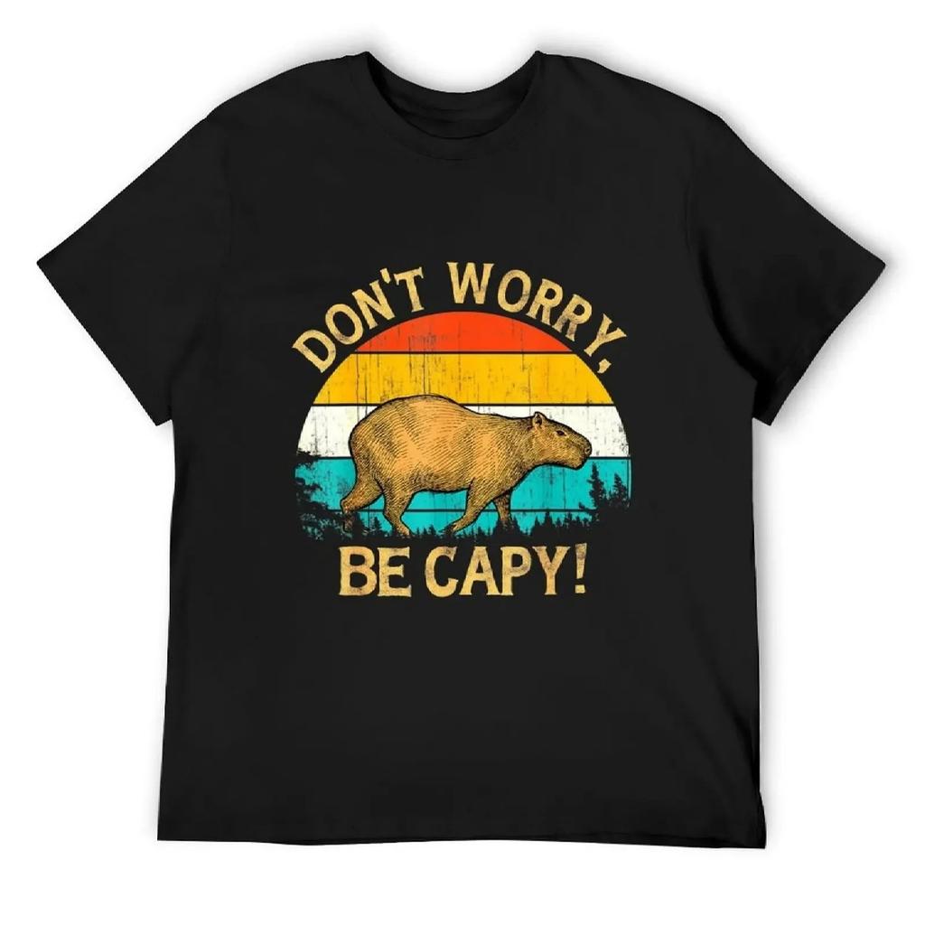 Capivara Estilo Retrô Vintage Incrível Não Se Preocupe, Seja Capy Camiseta coisas de anime roupa de rua Camiseta Masculina Camisetas para homens algodão