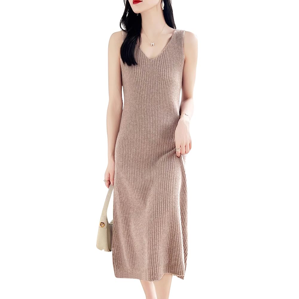 PHOLEEY Knit Solid Casual Outfit for Women's Midi-Length Dress, Color, Simple, Warm, Fall/Winter