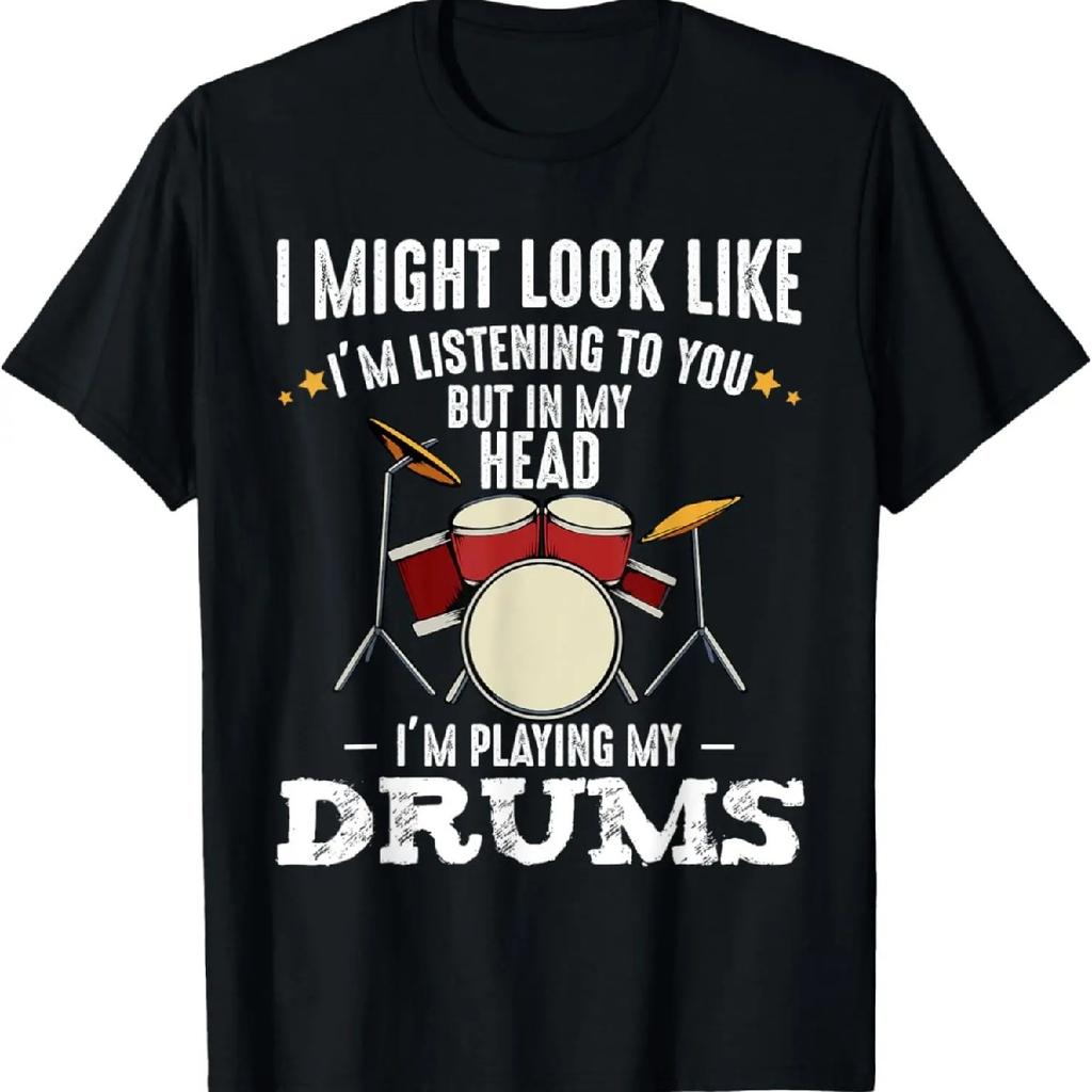 Na Minha Cabeça Estou Tocando Meus Tambores Camiseta Engraçada para Baterista Banda Música