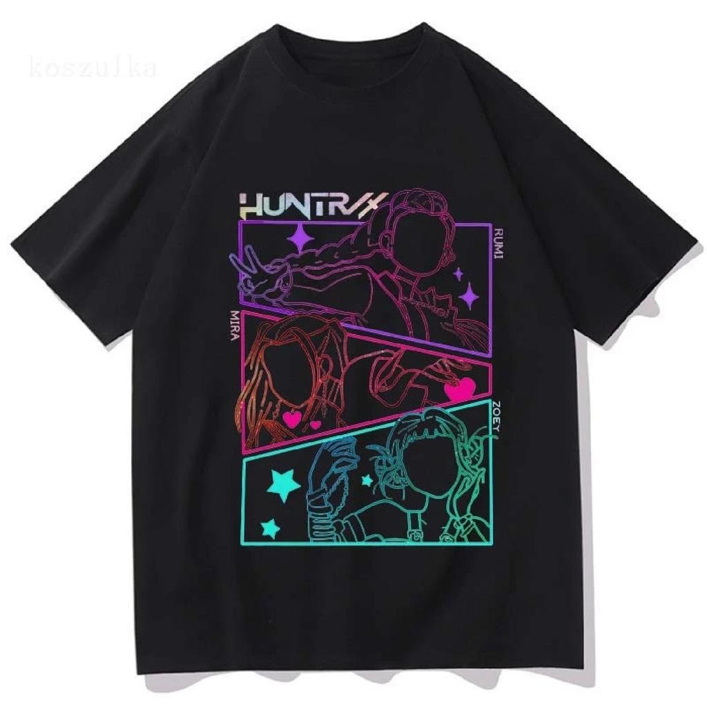 Camisetas Filme KPop Caçadores de Demônios 2025 Verão Algodão Solto Masculina Camiseta Unissex Streetwear Moda Hip Hop Camiseta Casual Homens