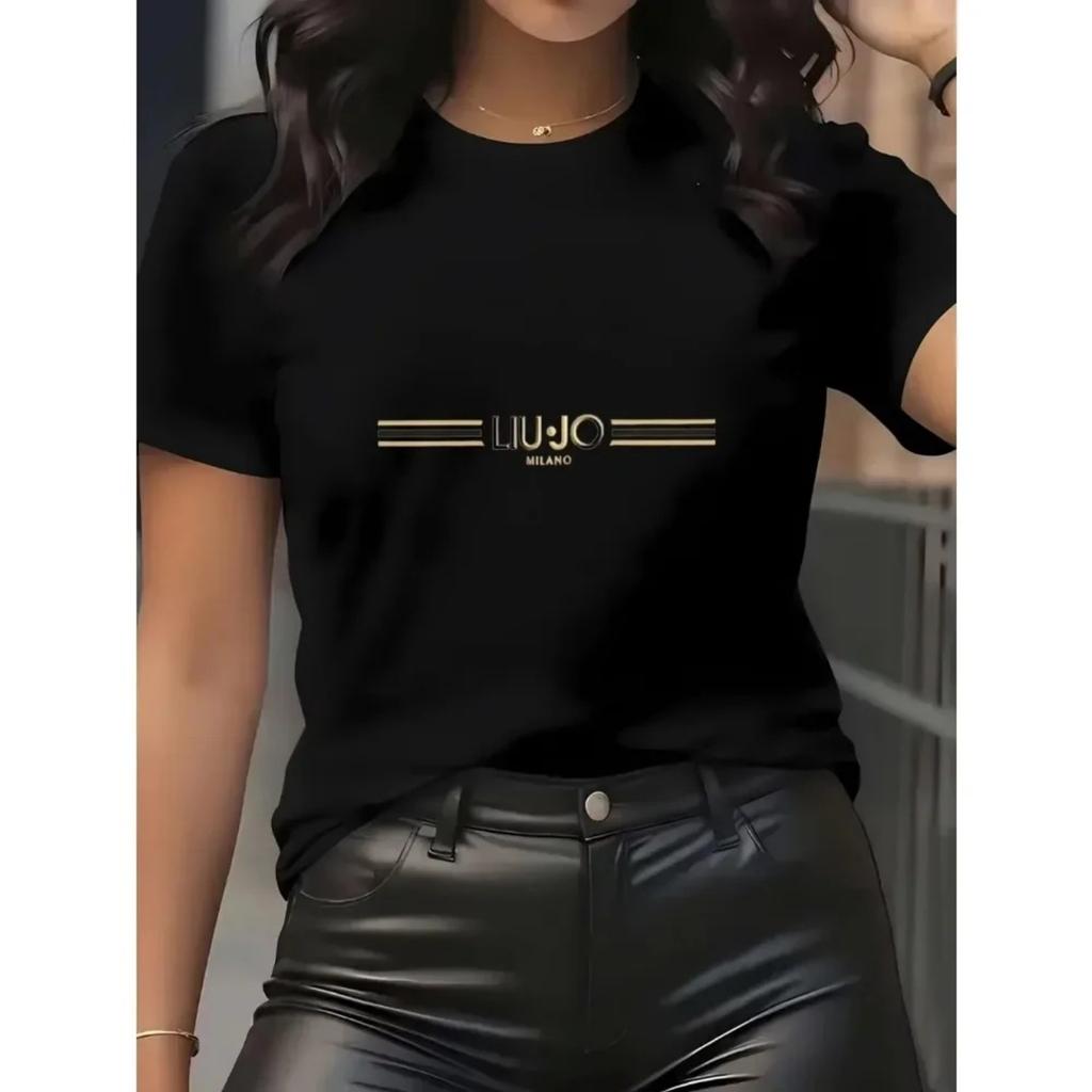 Camiseta Feminina 2025 Moda Casual Estampa Manga Curta Algodão Camisetas Marca de Luxo Alta Qualidade Camiseta Verão Streetwear Y2k Tops