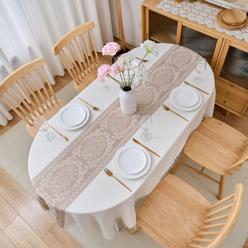 Oval Tablecloth Waterproof Fabric Dining Table Cloth Cover Cloth Light Luxury High-End Coffee Table Cloth Cover Towel West Dining Table Tablecloth