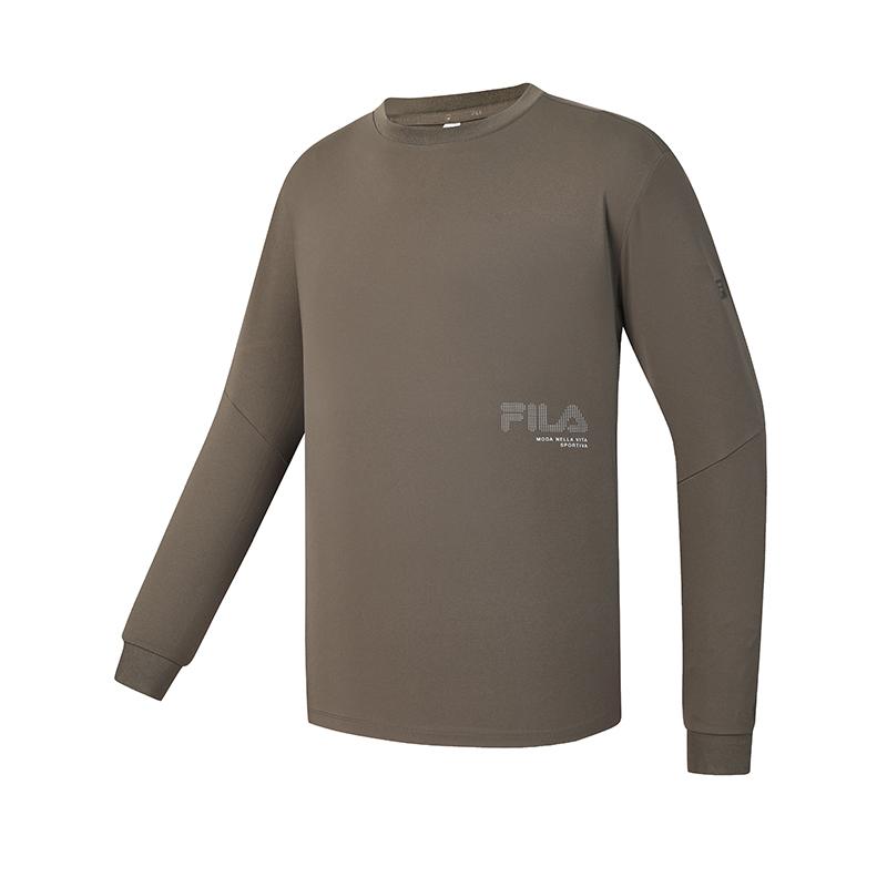 FILA Fitness Series Simple Sports Casual Training Versatile Comfortable Crew Neck Pullover Long Sleeve T-Shirt Men tops Brown A11M611209FBN